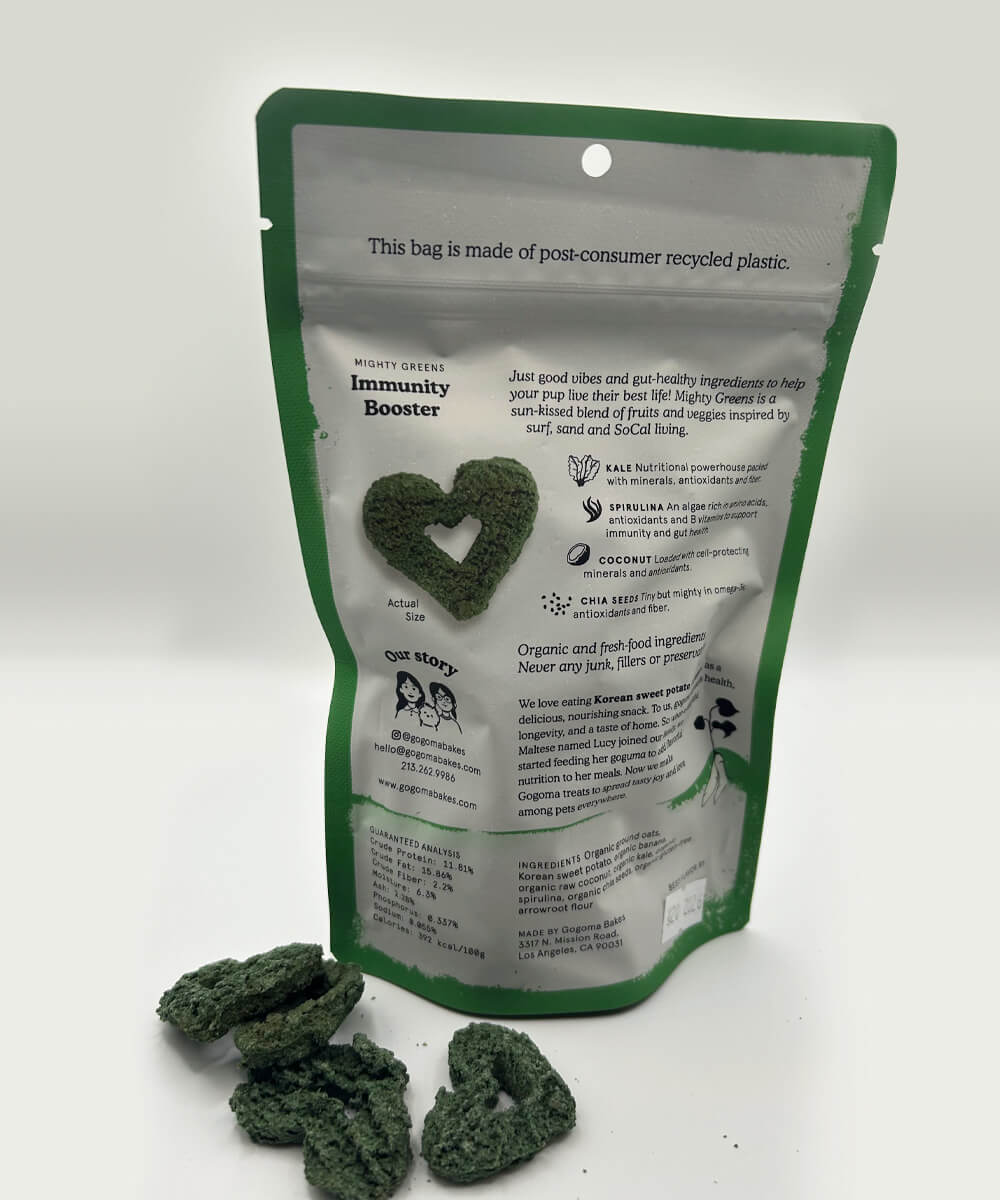 GOGOMA is a crunch dog treat made of Korean sweet potato (goguma), which is known to be rich in nutrients, minerals, and fiber. When mixed with other flavorful superfoods it becomes an even richer delicacy for pets. Gogoma tastes and smells like delicious real food loved by picky dogs and humans who want the very best for their furry friends. GOGOMA is a thoughtful option for pet parents looking for simple ingredients with purposeful benefits. It comes in the following flavors: